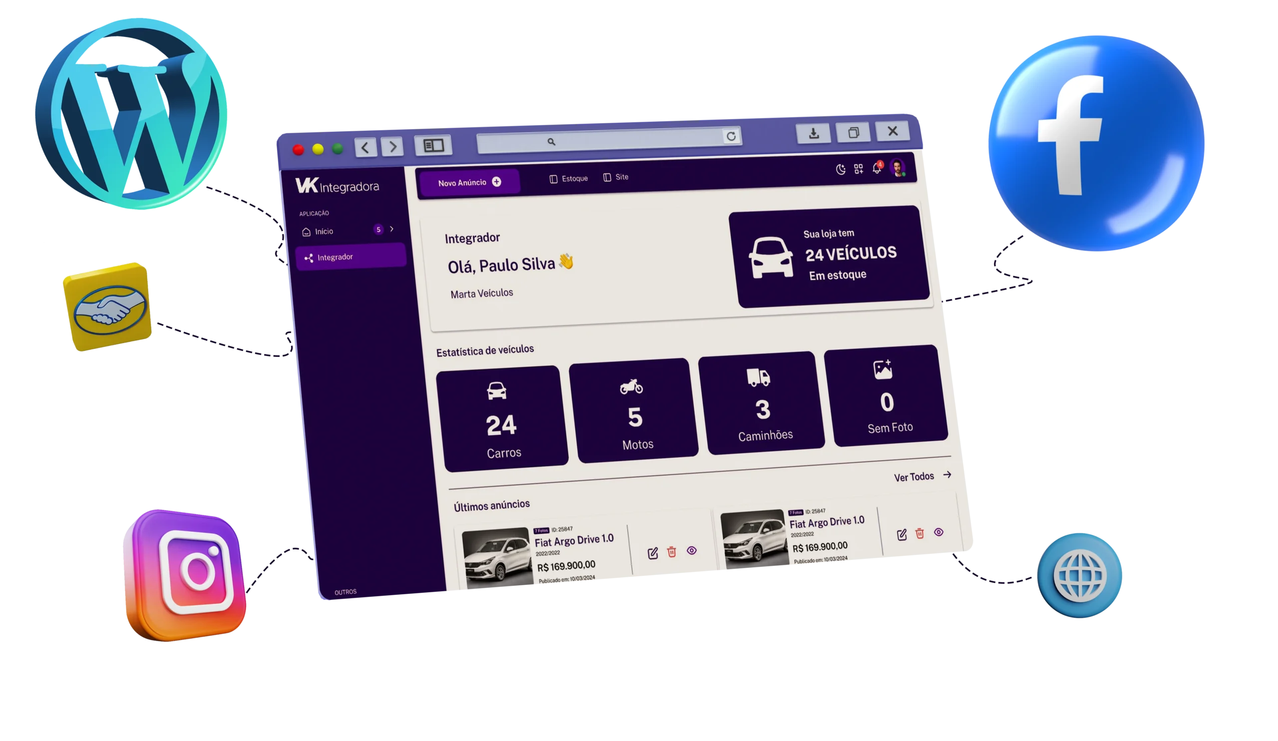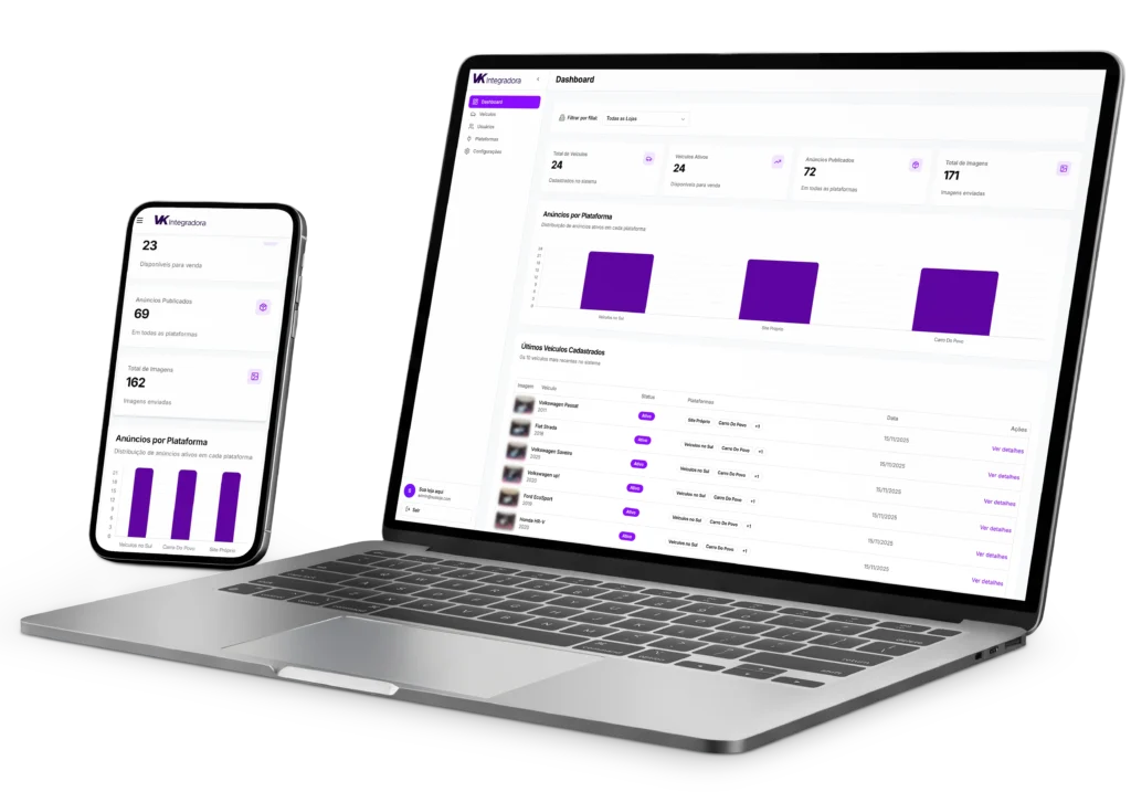 Mostre seus carros em um site moderno, integrado e pronto para vender por você 24h por dia.